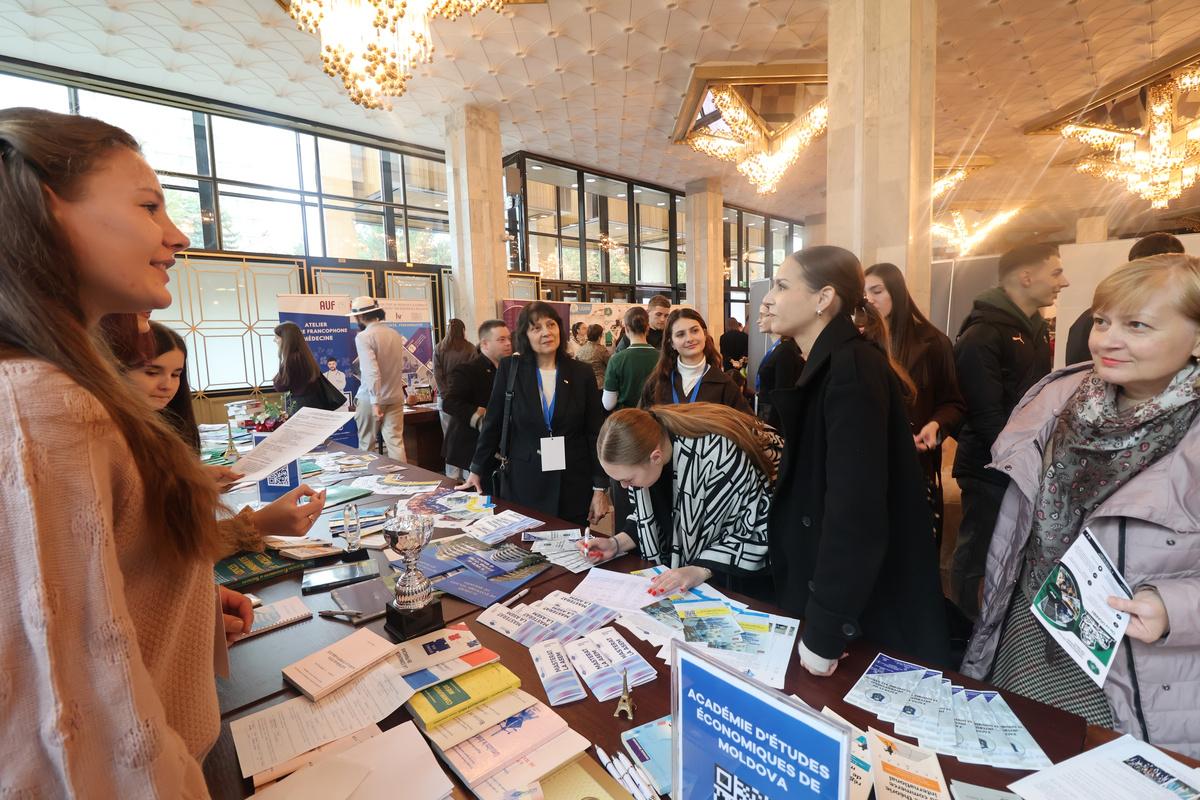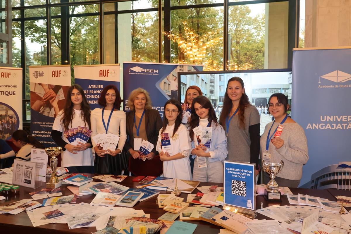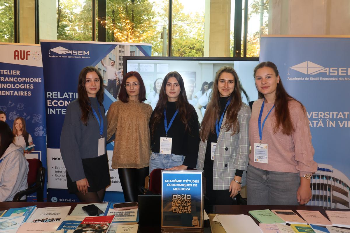 L'Académie d'Études Économiques de Moldavie (AÉÉM) a brillamment marqué sa présence grâce à une équipe engagée d’étudiants et d’enseignants coordonnée par Dr., MCF Larisa DODU-GUGEA, doyenne de la Faculté de Relations Économiques Internationales, Responsable de la Filière Francophone RÉI, AÉÉM ; Dr., MCF Elina BENEA-POPUȘOI, la Responsable du Centre d’Employabilité Francophone de l'AÉÉM ; Dr., MCF Djulieta RUSU. Les étudiants de la Filière francophone RÉI-AÉÉM ont animé avec professionnalisme l’atelier « Étudiants compétents de l’AÉÉM, entreprises compétitives : réussir ensemble dans l’Union Européenne », dévoilant les nombreux atouts des parcours de licence et de master proposés par l'AÉÉM, ainsi que les perspectives d’insertion sur un marché du travail de plus en plus connecté à l’espace francophone.